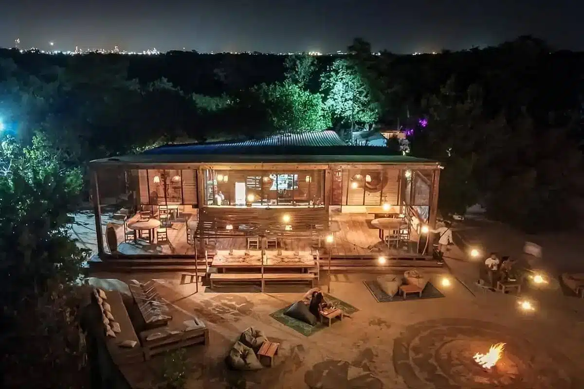 📍 Las mesas están ubicadas cerca de la fogata para crear un ambiente cálido, íntimo y romántico.
