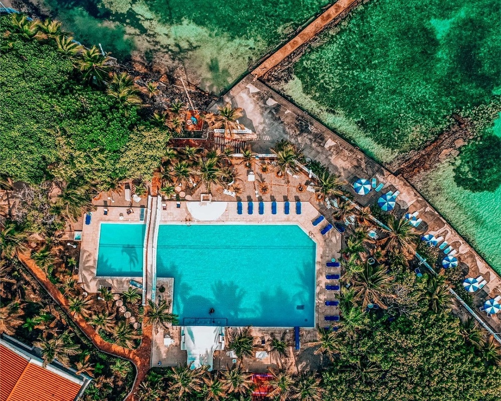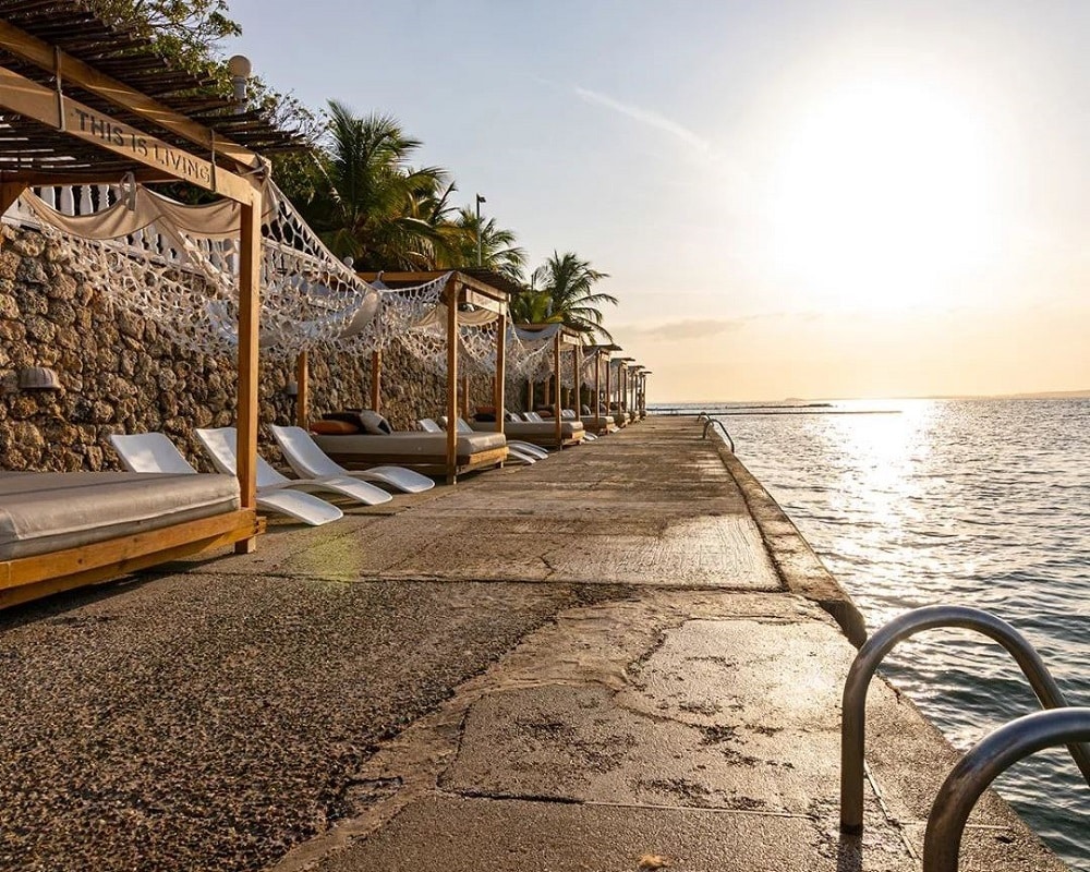 Aquí, cada rincón invita al descanso: palmeras que se mecen con la brisa, muelles de madera que se adentran en el mar, y una vista que parece sacada de una postal caribeña. Es el escenario perfecto para relajarse, tomar el sol y vivir una experiencia única frente al mar.