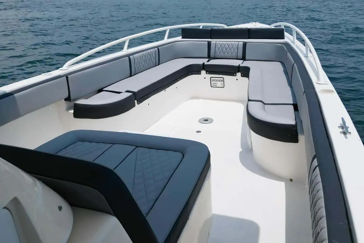 Esta lancha deportiva combina rendimiento y estabilidad, ofreciendo una navegación fluida incluso en trayectos largos.