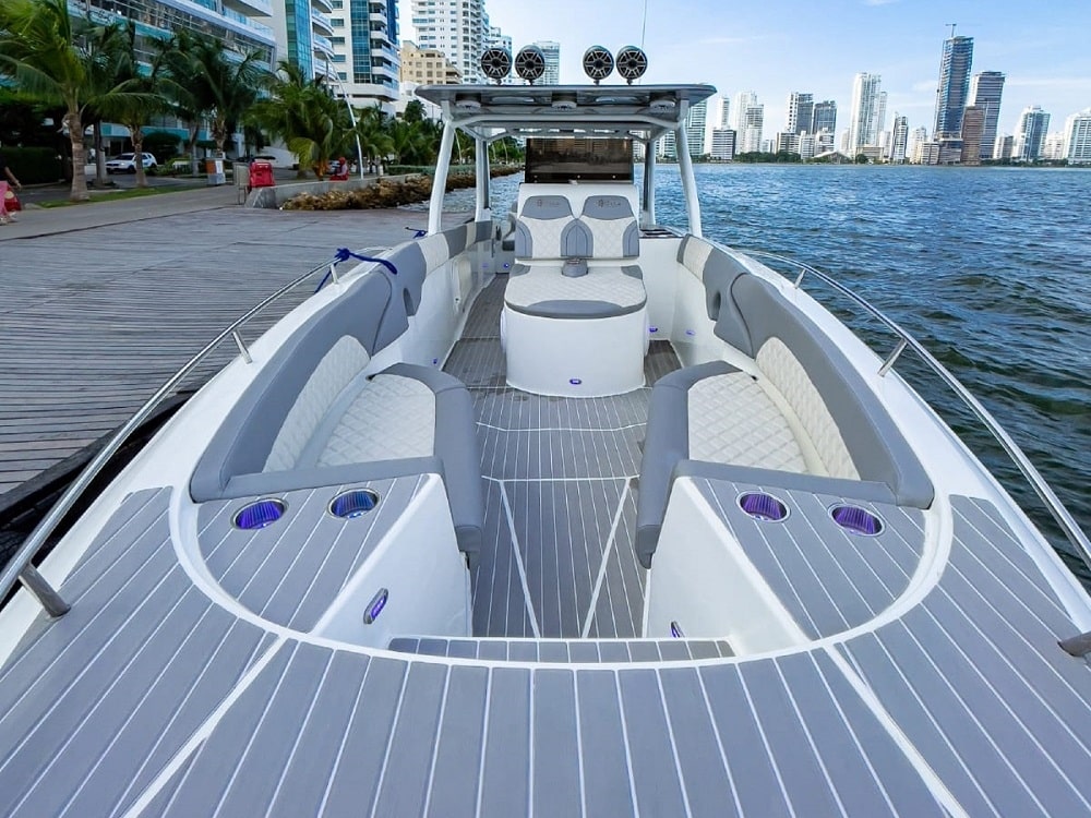 Esta embarcación es ideal para grupos medianos que buscan espacio, potencia y elegancia en una sola lancha.